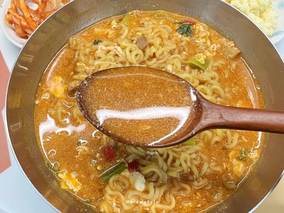 국물을 한 숟가락 맛보았다. 후첨스프의 영향이 크다. 국물이 묵직한데 사골 느낌도 난다. 국물만 떠먹어보면 매운맛은 덜하며 목 넘김이 꽤 부담 없이 넘어간다.