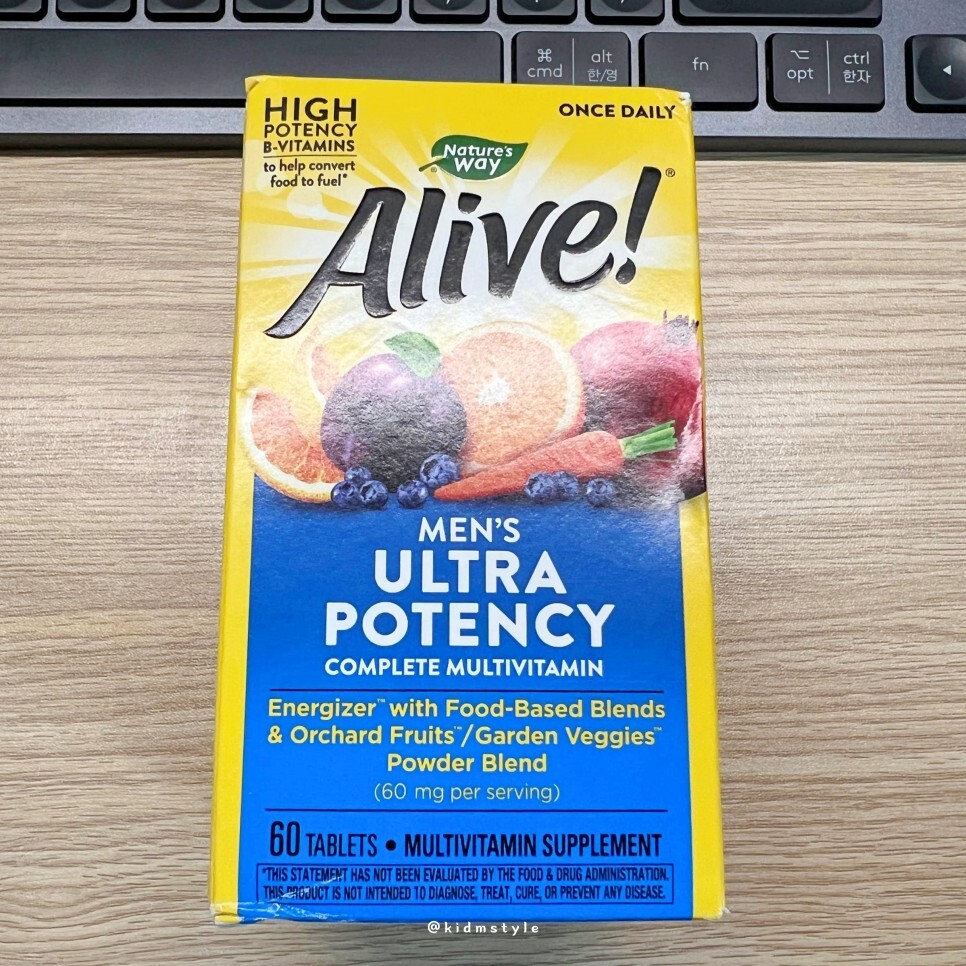 먼저 오늘 소개할 네이쳐스웨이 얼라이브 맨즈 울트라 포텐시 남성용 멀티비타민이라는 제품이다. 얼라이브라는 브랜드를 신뢰하는 편이며 영양제 관련은 웬만하면 직구로 구입한다.