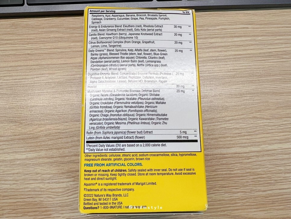 미국 제품이며 섭취는 매일 1회 음식과 함께 먹으면 된다. 보통 식사 후 바로 먹는 편이다.