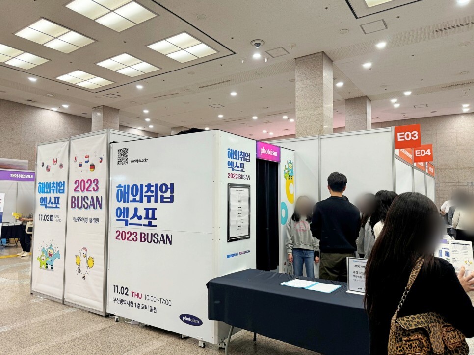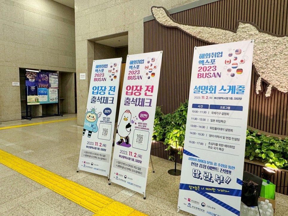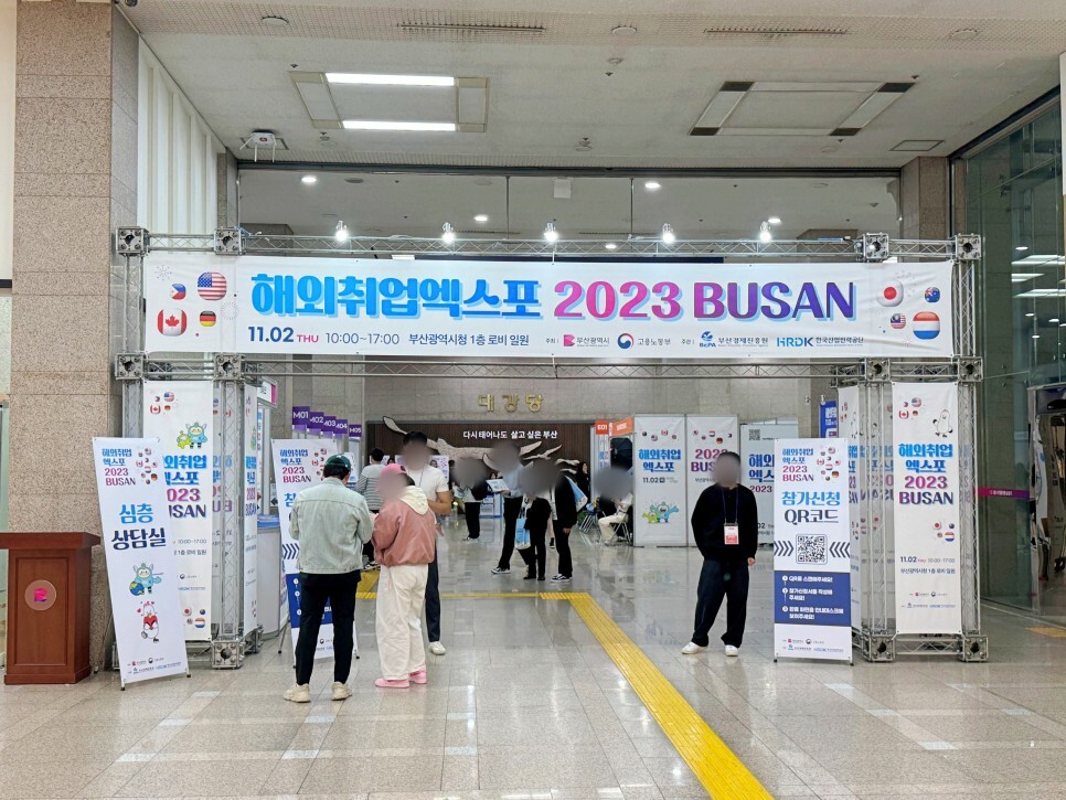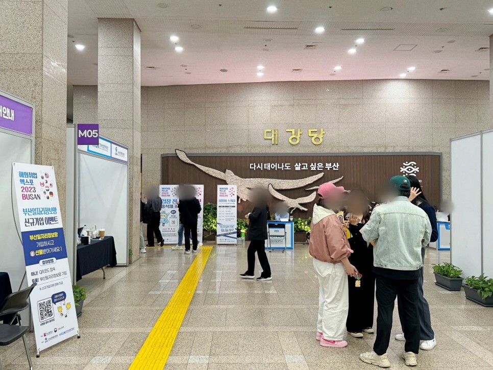 오늘 소개할 행사는 해외취업엑스포 2023 부산입니다. 부산시청 1층 로비 일원에서 행사가 진행되었습니다. 11월 2일 당일 10시부터 17시까지 행사가 열렸는데요. 제가 방문한 시간이 오후 4시경이었는데 방문객들이 많았어요. 관계자의 말에 따르면 점심 이후 정말 많은 분들이 찾았다고 하더군요.