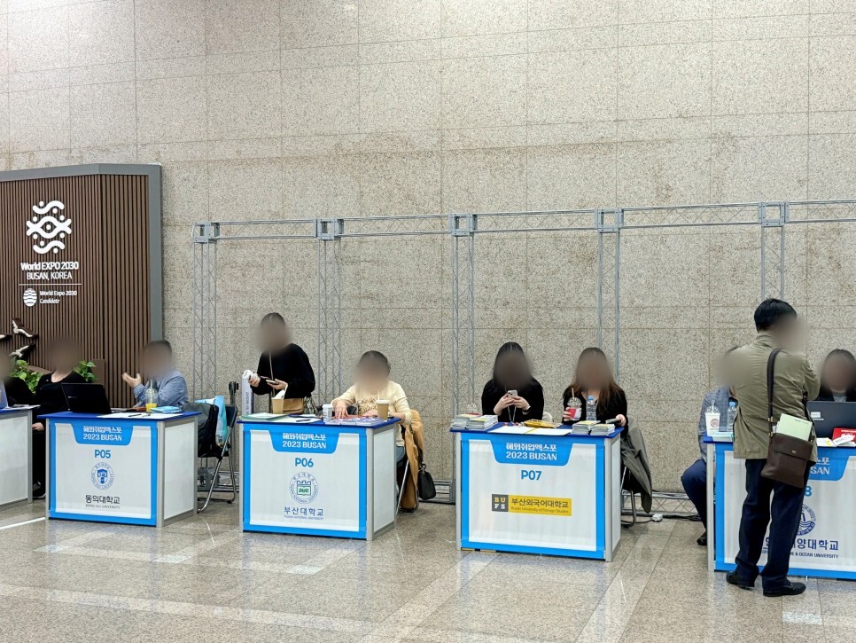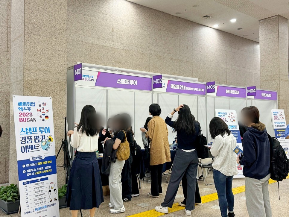 부산 소재 8개 대학교의 부스도 운영되고 있었는데요. 학교에서 지원하는 해외인턴 등 해외취업에 관한 정보 등을 제공하여 다양한 정보를 확인할 수 있었습니다.