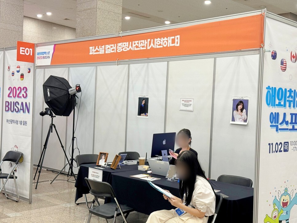 본인에게 어울리는 컬러를 배경으로 증명사진을 찍는 부스도 반가웠습니다.