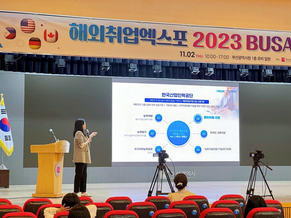 제가 방문했을 때는 한국산업인력공단의 설명회가 한창이었습니다. 해외취업 초심자를 위한 주요 국가 특강이었는데요. 해당 분야 전문가가 자세하게 소개하는 내용은 잠시 들어보았을 때도 꽤 도움이 될 것 같다는 생각이 들었습니다.