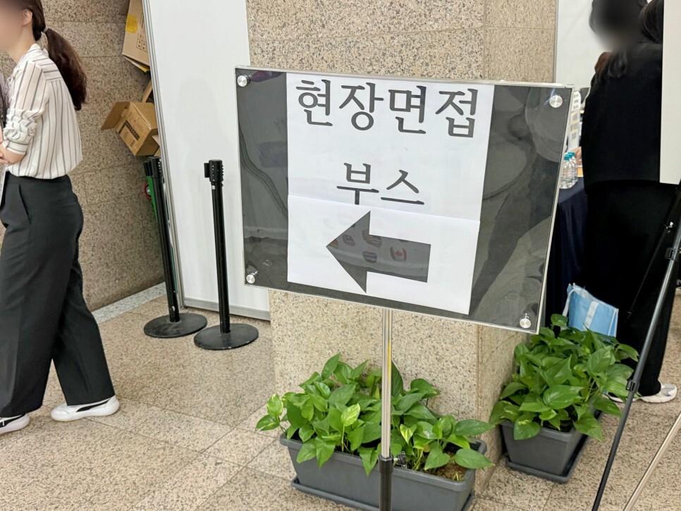 정장 차림으로 서류를 준비하여 현장에서 면접을 보는 분들을 많이 만날 수 있었습니다. 긴장감이 돌았지만 기업 담당자분들이 분위기를 잘 이끌어서 따뜻한 분위기로 진행되는 모습이었어요.