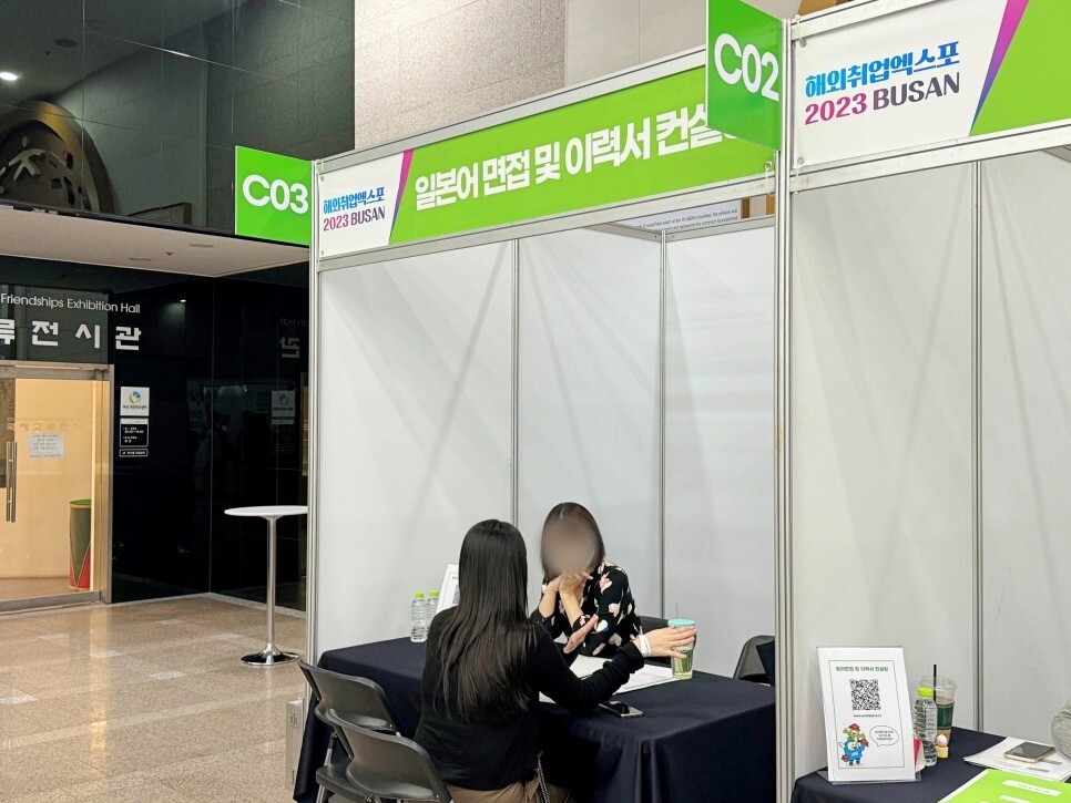 부산시는 9월부터 10월까지 오늘 행사에 참가하는 해외기업에 취업을 희망하는 입사 지원자를 모집한 바 있어요. 그 입사 지원자를 대상으로 현장에서 채용 면접을 진행하게 되었습니다.