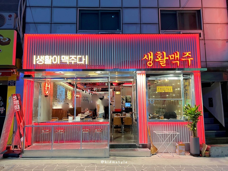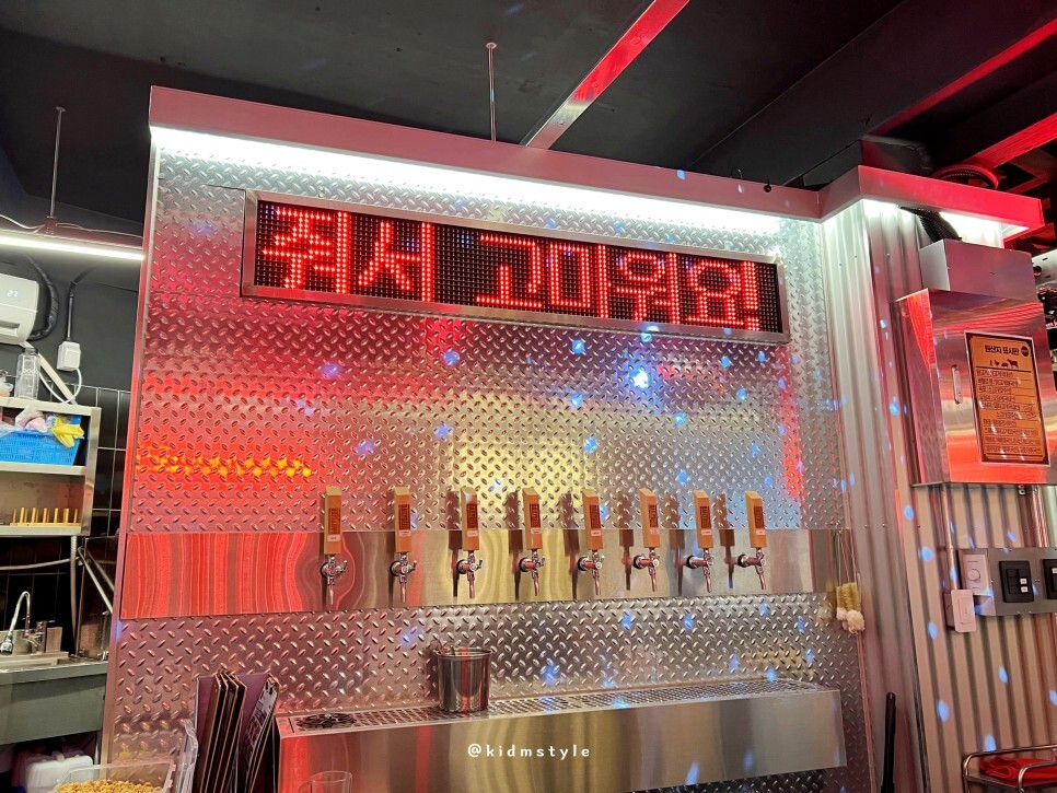 이 집은 맥주와 치킨을 전문으로 하는 술집이다. 특징이 하나 있는데 생맥주 주문 시 소맥을 원하면 무료로 타준다. 500ml를 주문하면 소주를 150ml 정도 타주니 아주 맛있는 소맥이 된다.