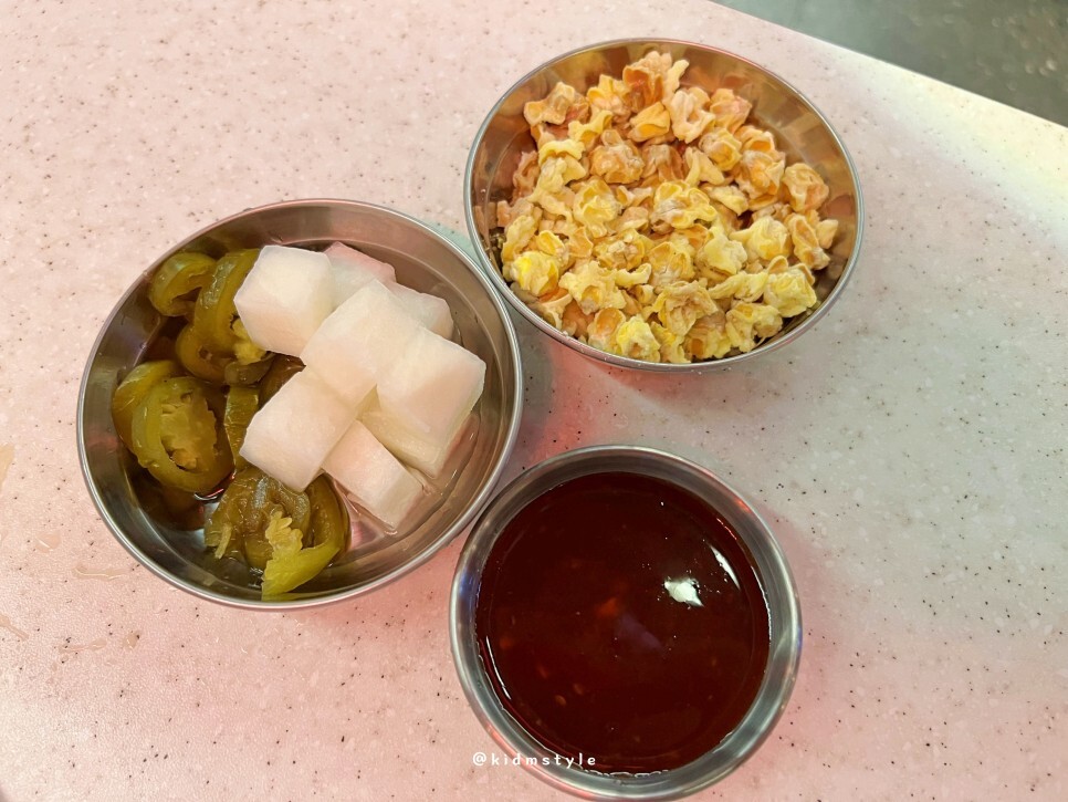 기본 안주로 팝콘이 나오는데 이게 참 고소 짭짤하고 맛있다. 리필이 가능하다.