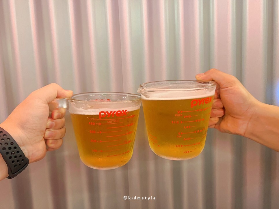 요즘 인기가 많은 파이렉스 계량컵을 맥주잔으로 사용한다. 약간 무거우니 참고.