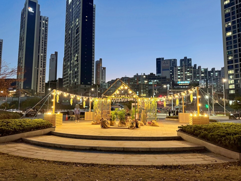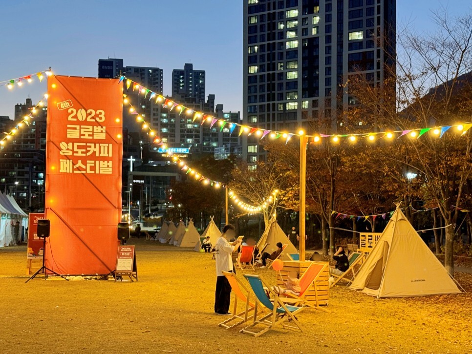 해가 지고 밤이 되니 더 멋진 공간으로 바뀌었어요. 작은 텐트 들 역시 누구나 휴식을 취할 수 있는 공간으로 운영되었어요. 감성 충만하죠? 힐링하는 시민들의 모습에 저도 힐링이 되었습니다.