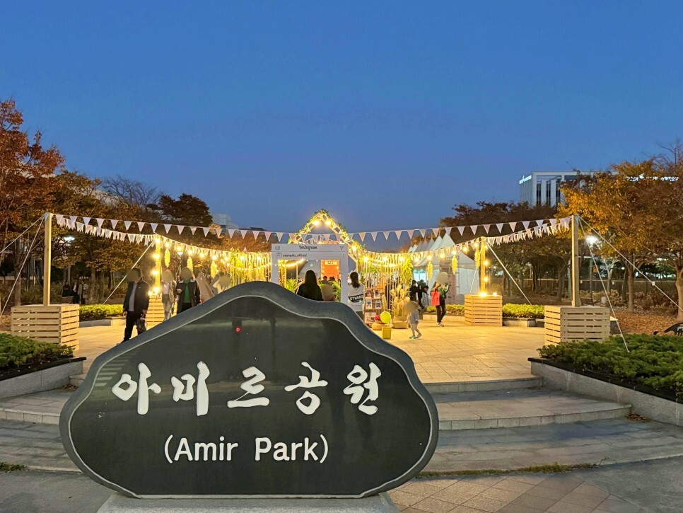아미르공원 입구까지 살펴봤어요. 입구에 멋진 포토존이 만들어져 있네요. 가족, 친구, 연인들끼리 사진을 찍어주느라 바쁜 모습이었습니다.