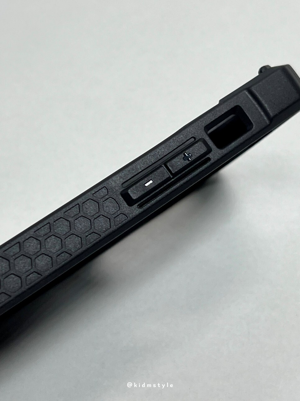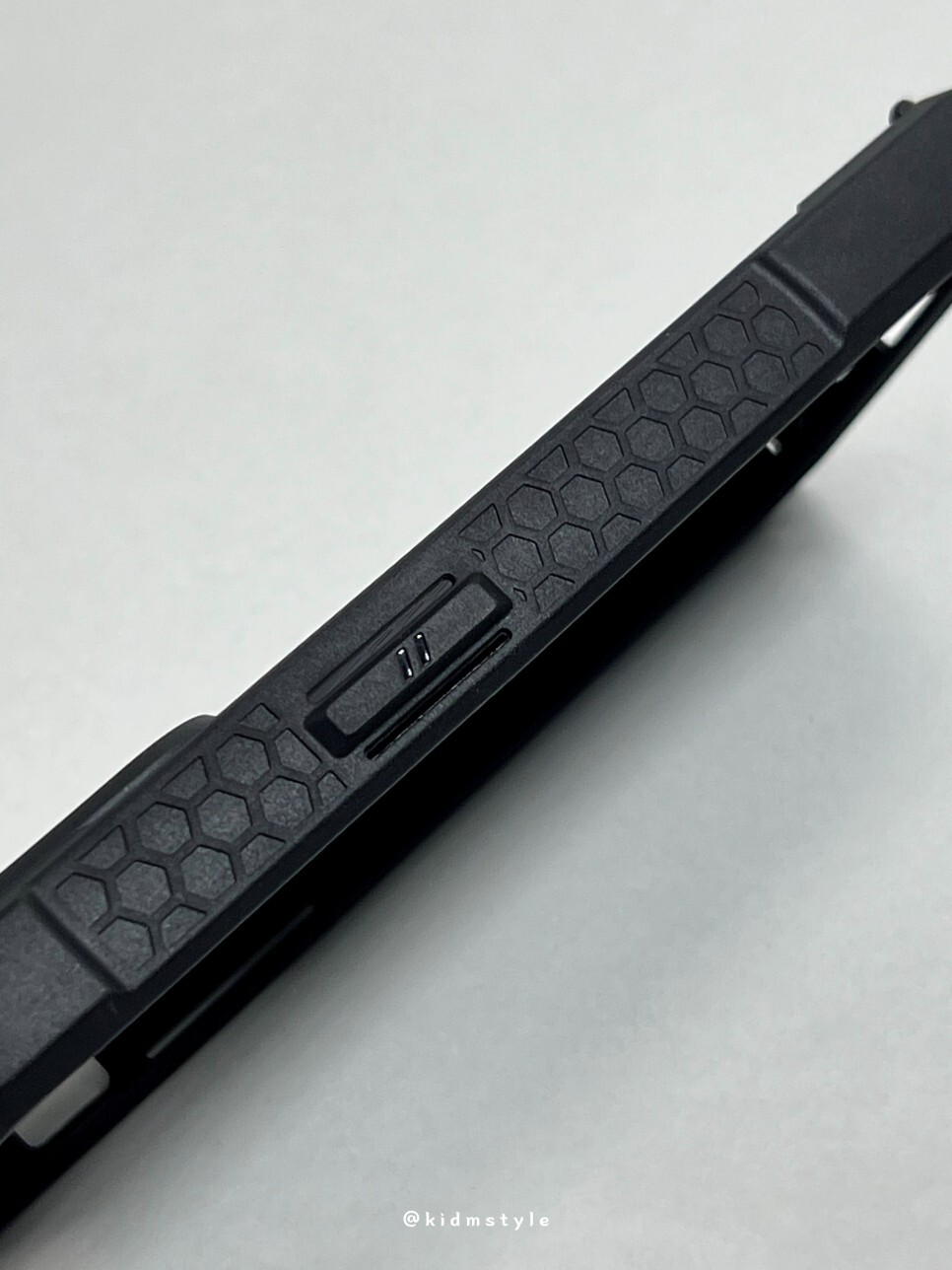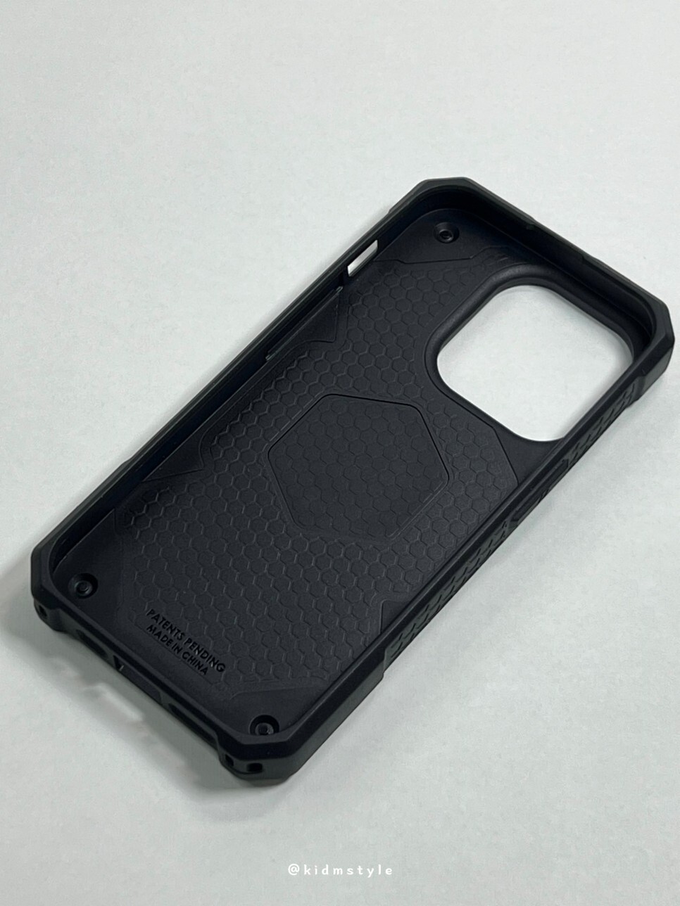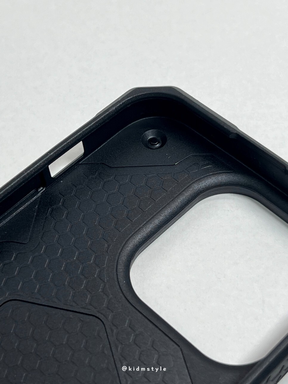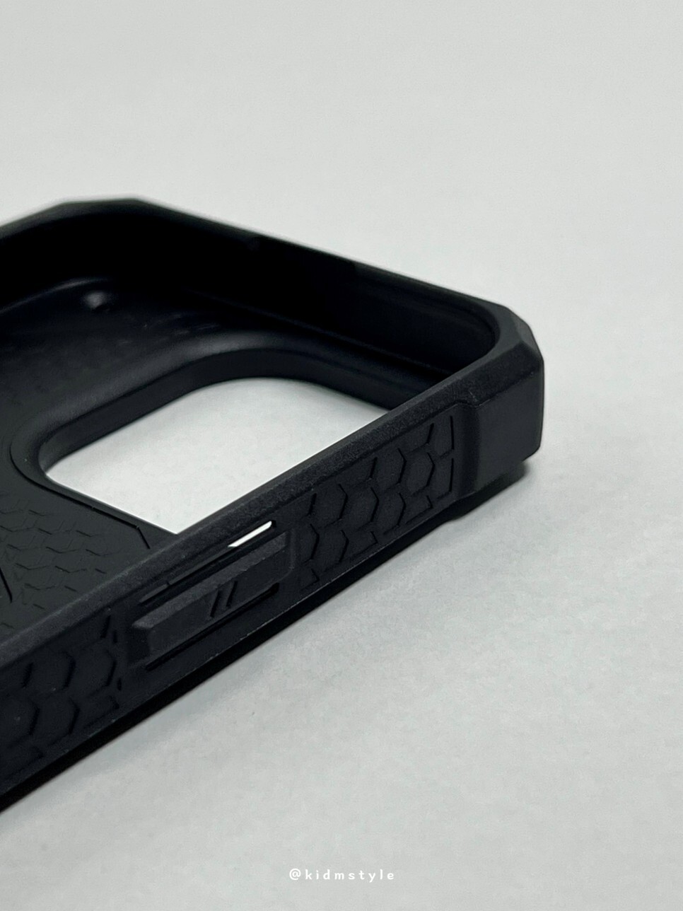 테두리에도 벌집 패턴으로 마감이 되어있다. 아이폰 14프로 모나크 케이스는 그립감이 별로 안 좋았는데 이번에 개선된 모양이다.