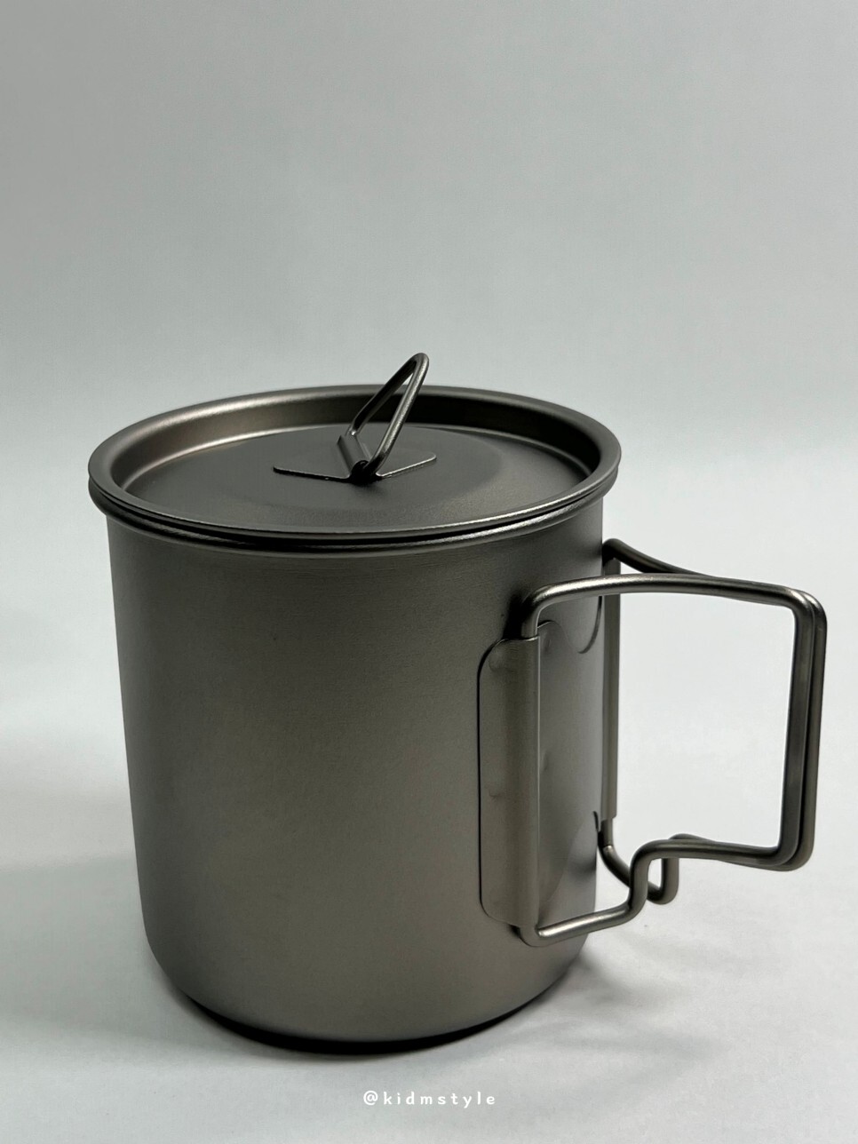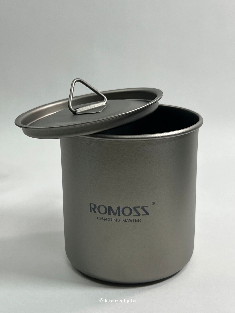로모스라고 충전기 전문 브랜드 로고가 찍혀있다. 캠핑이나 등산 때 사용하면 괜찮을 타이타늄 컵이다.