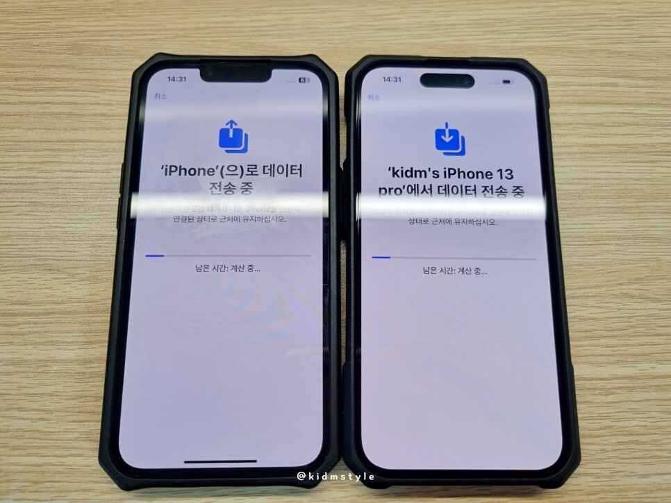왼쪽은 아이폰 12프로, 오른쪽은 아이폰 13프로 케이스 이때부터 플라즈마 케이스 대신 모나크 케이스를 사용하기 시작했다.