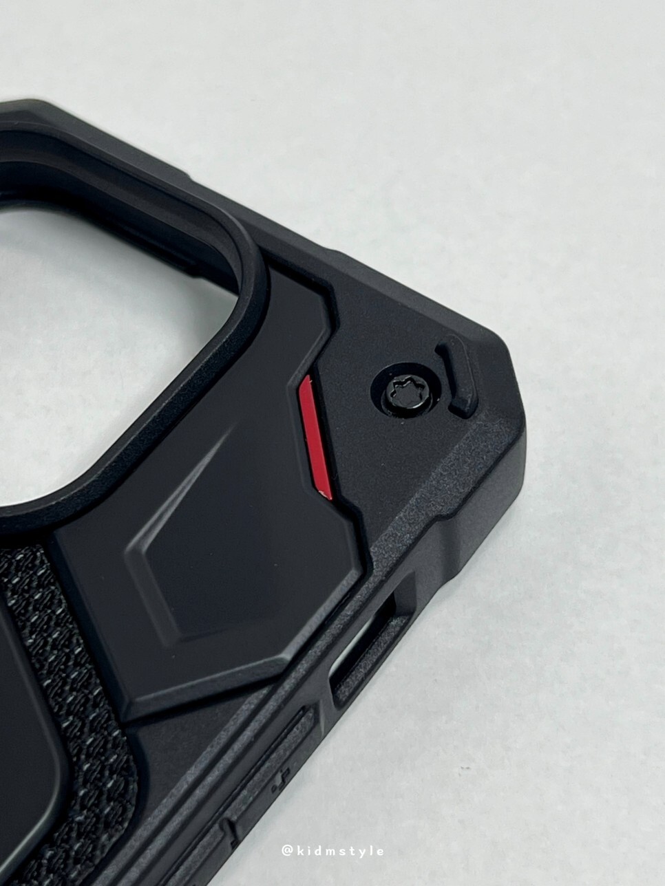 맥세이프 버전이며 가운데 테두리에 듀폰 사의 케블라 소재가 사용되었다. 모나크 케이스는 케블라, 카본, 레더 등 다양한 소재가 있는데 케블라 소재가 가장 인기가 많고 비싸다.