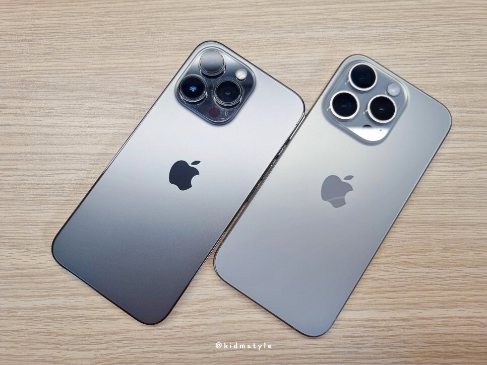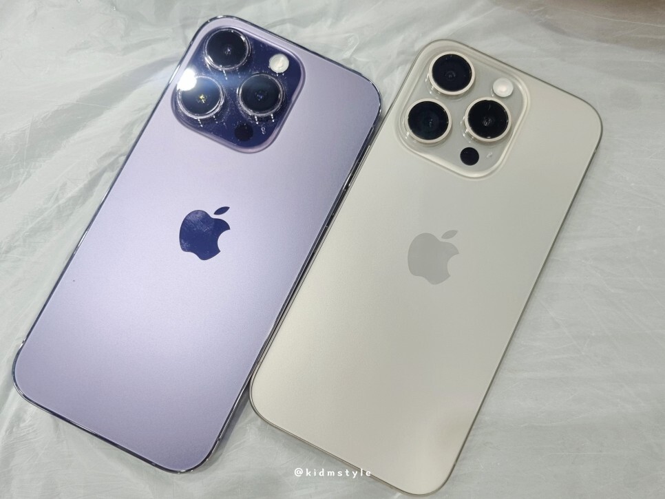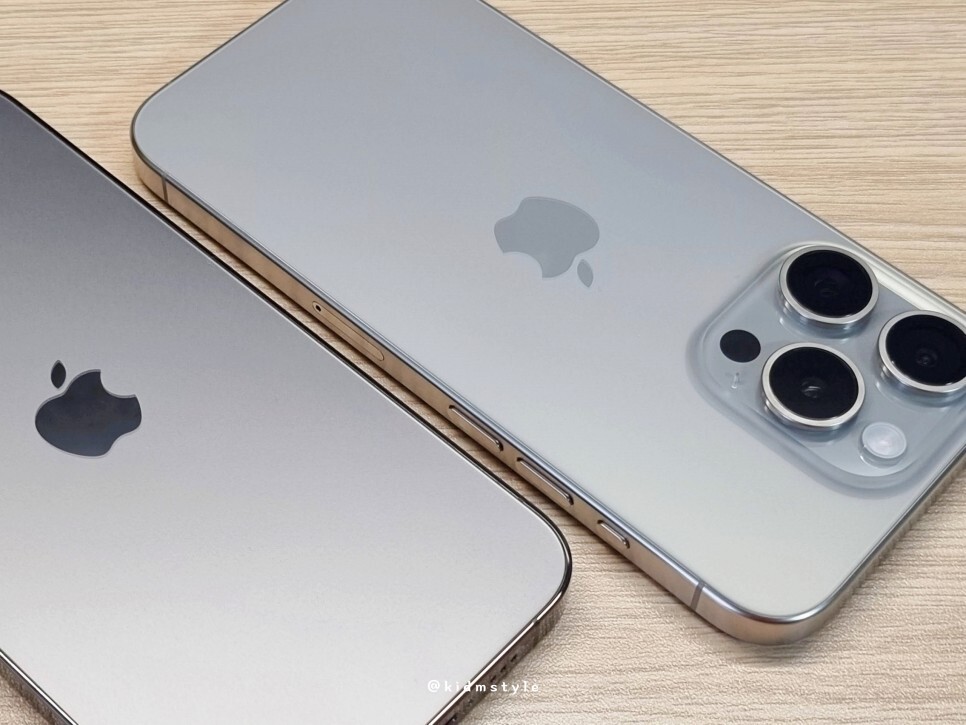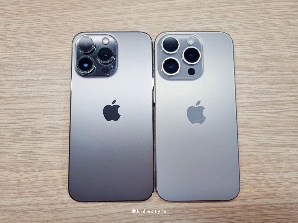 왼쪽은 기존에 사용하던 아이폰13프로 스페이스그레이, 오른쪽은 이번에 구입한 아이폰15프로 내추럴티타늄
