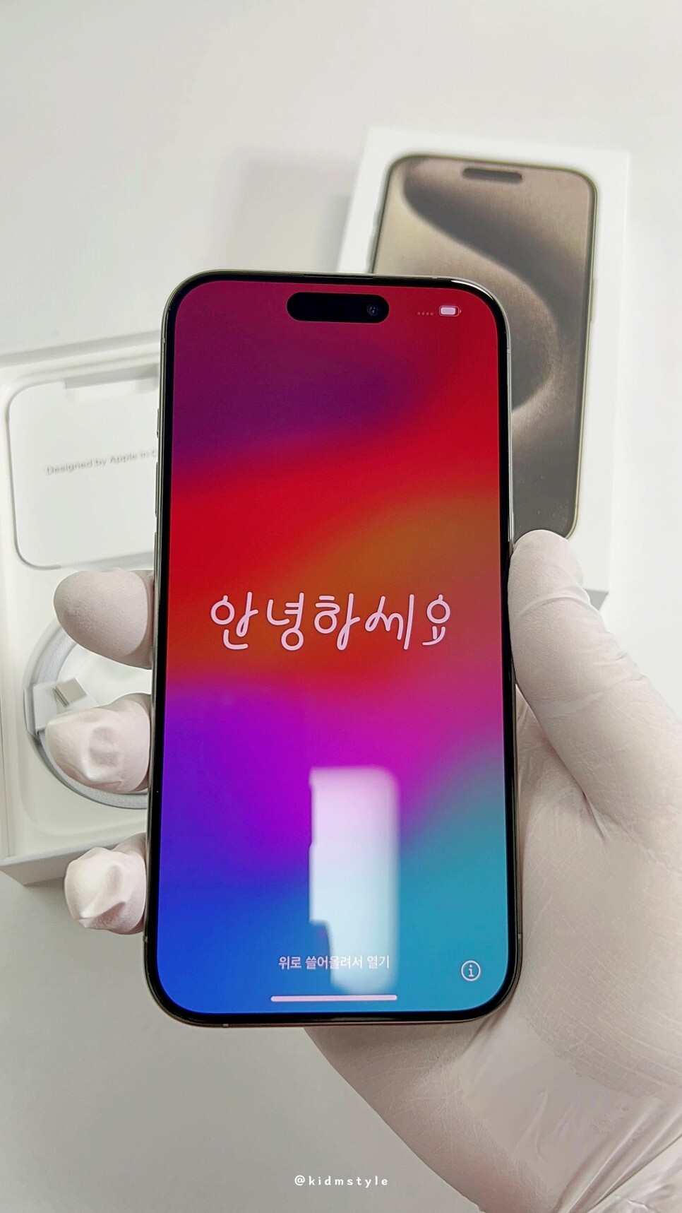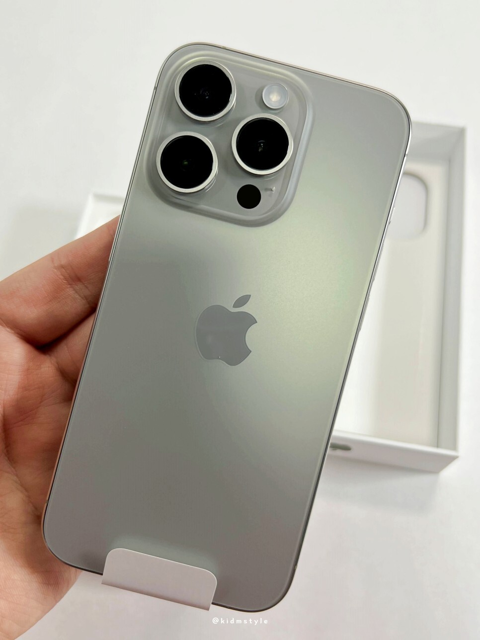 내추럴티타늄의 모습이다. 이번 아이폰15프로는 내추럴티타늄이 시그니처 색상이며 블루, 화이트, 블랙 등 총 4가지가 출시되었다. 화이트와 고민하다가 내추럴 색상을 구입했는데 이게 참 오묘한 색상이다. 어차피 케이스 씌우고 쓰지만 오래간만에 시그니처 컬러를 구입해 보았다.