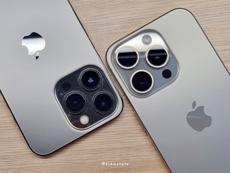 테두리 스테인리스 재질의 아이폰13프로와 타이타늄 소재의 아이폰15프로의 비교이다. 소재도 다르지만 모서리의 곡률이 확실히 바뀌었고 무게가 소폭 감량하여 그립감이 상당히 좋아졌다. 물론 카툭튀는 더 심해졌다.