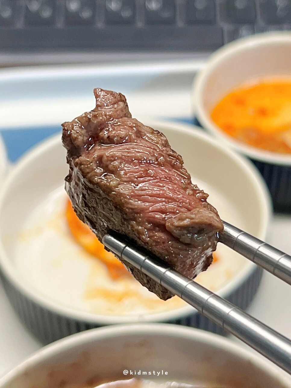 큰 기대를 안 했는데 고기 괜찮더라. 육즙이 와, 소주 땡기는 비주얼이다. 잘 구워서 그런가? 고기가 좋은가? 소고기는 잘 모른다. 먹어보니 맛있더라. 술 한 잔이 생각나는 그런 맛. 질기지 않고 부드러워서 만족스러운 식사였다.