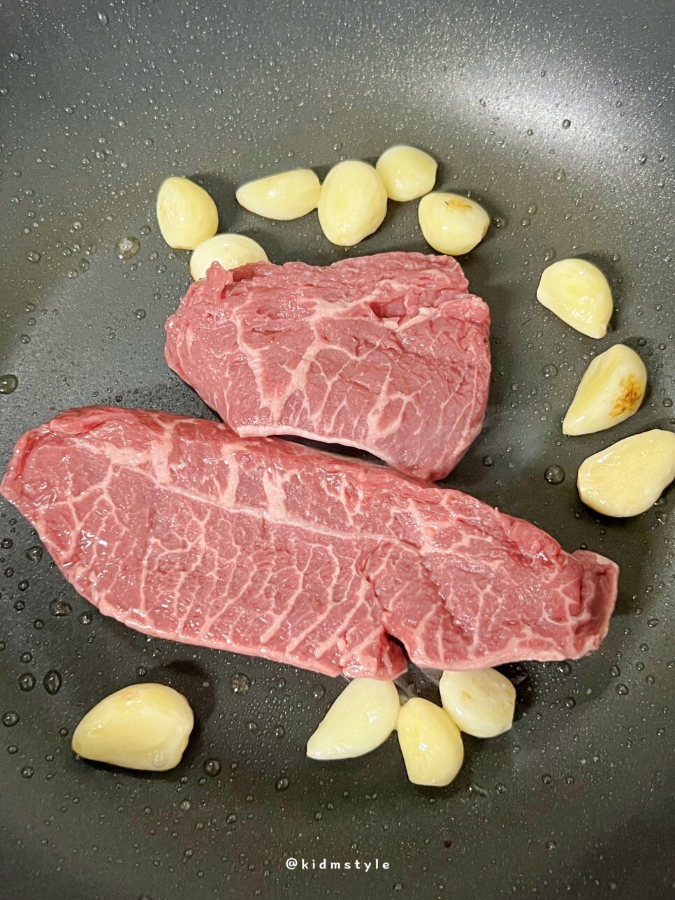 마침 집에 스테이크 시즈닝이 있어서 뿌려준다. 너무 맛있겠다.