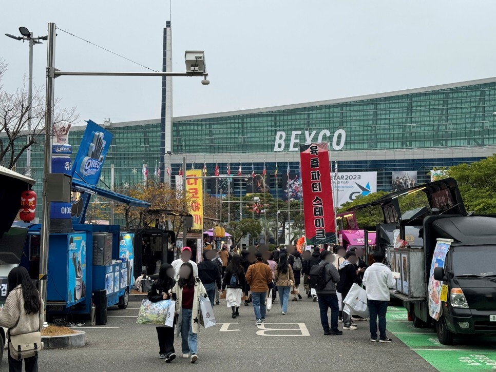 축제하면 먹거리도 빠질 수 없는데요. 수많은 푸드트럭이 배치되어 쾌적하게 식사 및 간식을 즐길 수 있었어요. 잠시 쉬면서 맛있는 음식으로 허기를 채우고 또 축제를 관람하는 모습을 보며 많은 분들이 지스타 2023을 제대로 즐기고 있다는 생각이 들었어요.