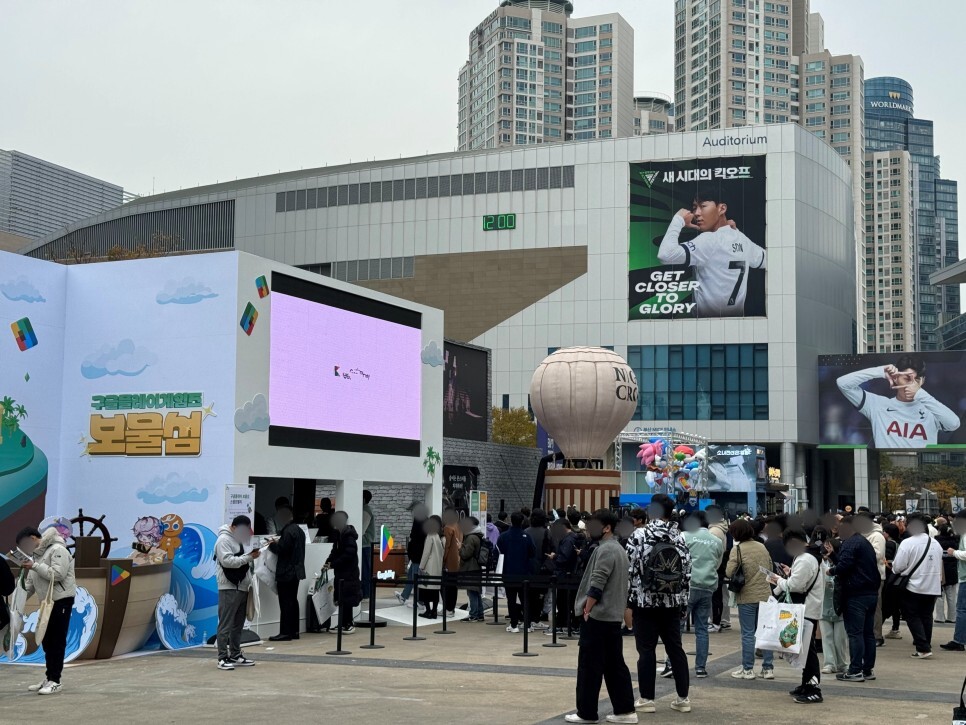 야외에도 다양한 부스가 설치되어 많은 분들이 줄을 서서 직접 체험하고 이벤트를 즐기는 모습을 만날 수 있었습니다. 예전의 행사들이 구경하고 전시를 관람하는 느낌이 강했다면 이번 지스타는 직접 체험하며 즐길 수 있는 부분이 더 많아서 더욱 풍성한 축제였던 것 같습니다.