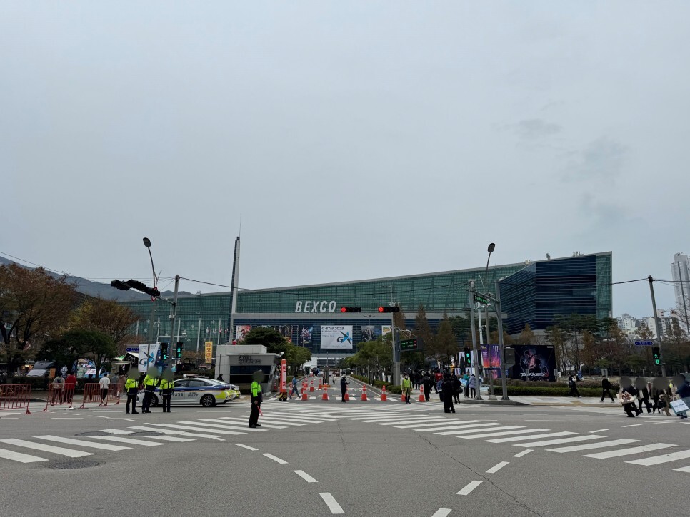 행사장을 나서면서 만난 풍경입니다. 행사장 일대 교통통제를 통해 혹시나 모를 안전에 대비하는 모습이 참 인상적이었습니다. 많은 분들이 곳곳에서 지스타 2023의 성공적인 진행을 위해 힘쓰는 모습이었습니다.