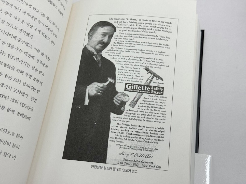 안전면도기라는 제품을 만들고 적극적으로 홍보한다. 많은 노력이 있었다.