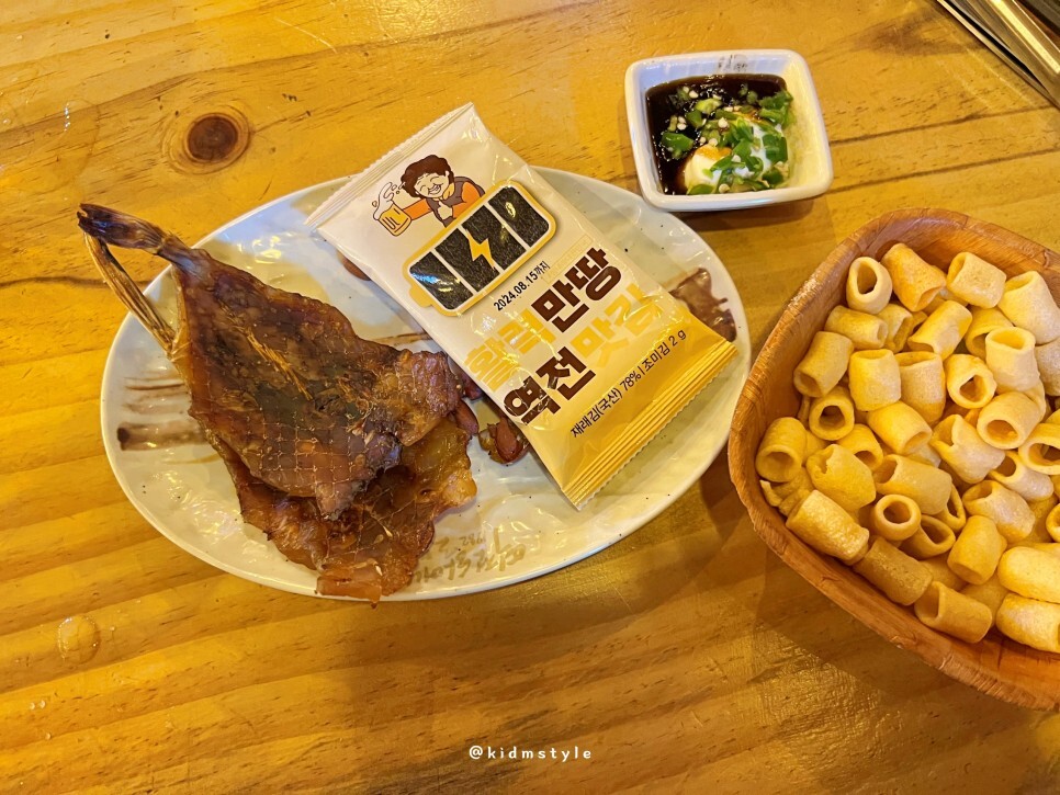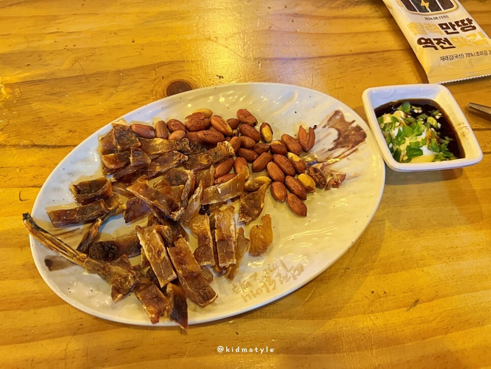 맛을 봤는데 이집 아귀포가 진짜 너무 맛있다. 이때까지 맥줏집에서 맛본 아귀포 중에서 제일 맛있게 먹었다. 나중에 후기를 찾아보니 먹태도 상당히 잘한다고 하더라.