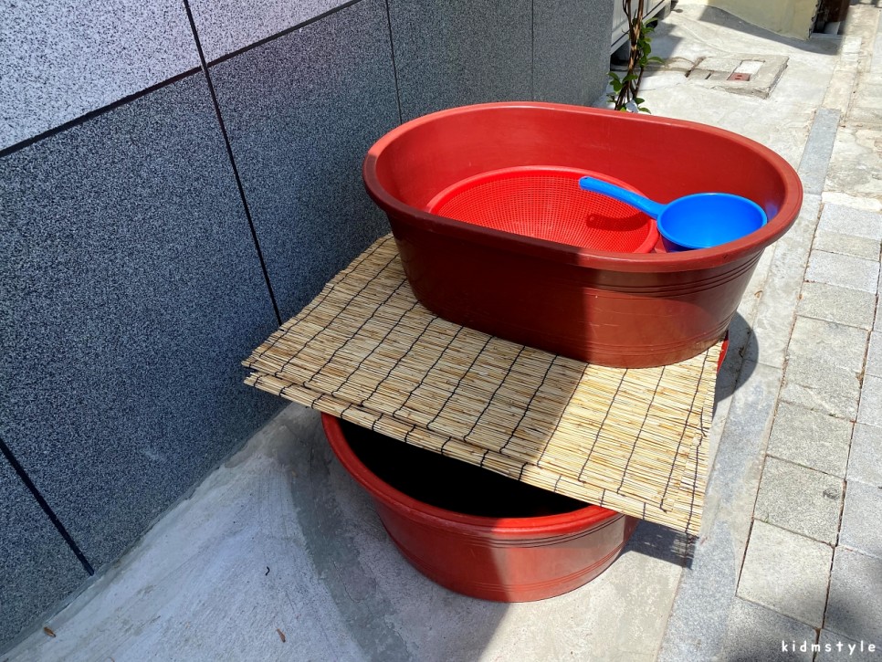 주문을 하고 가게 앞에 놓여있는 빨간 고무대야를 보았다.