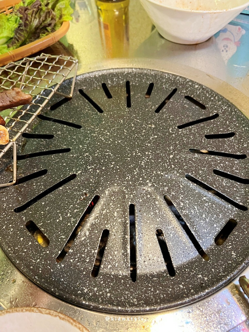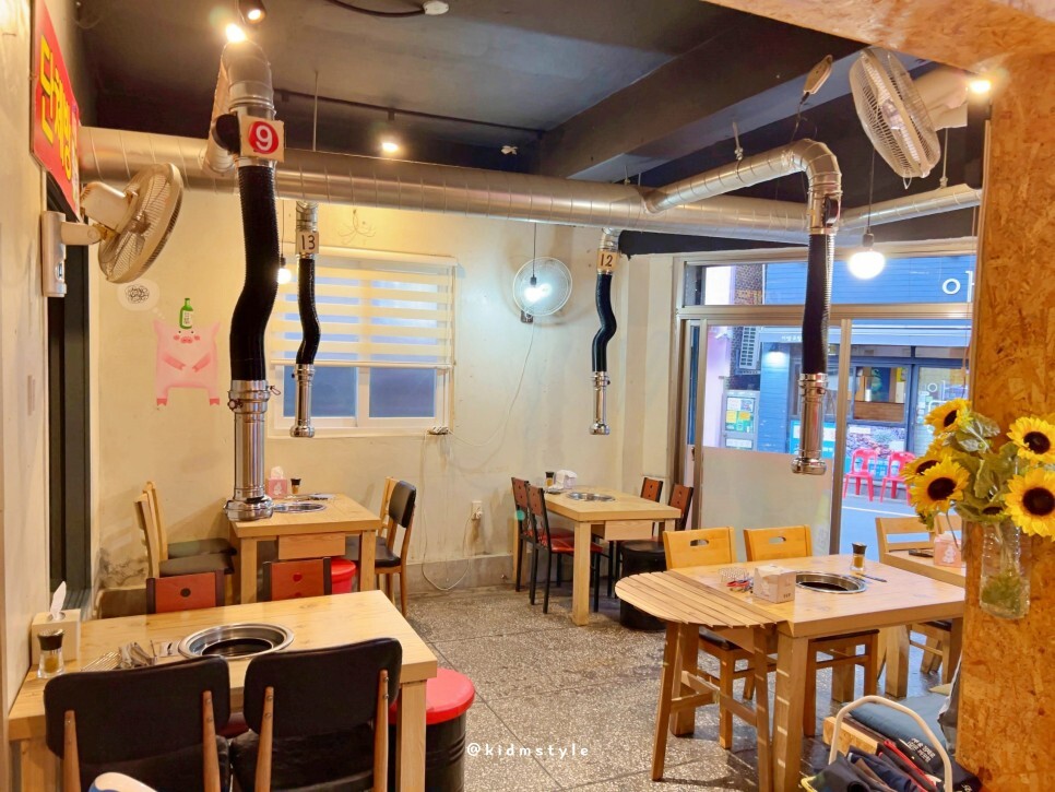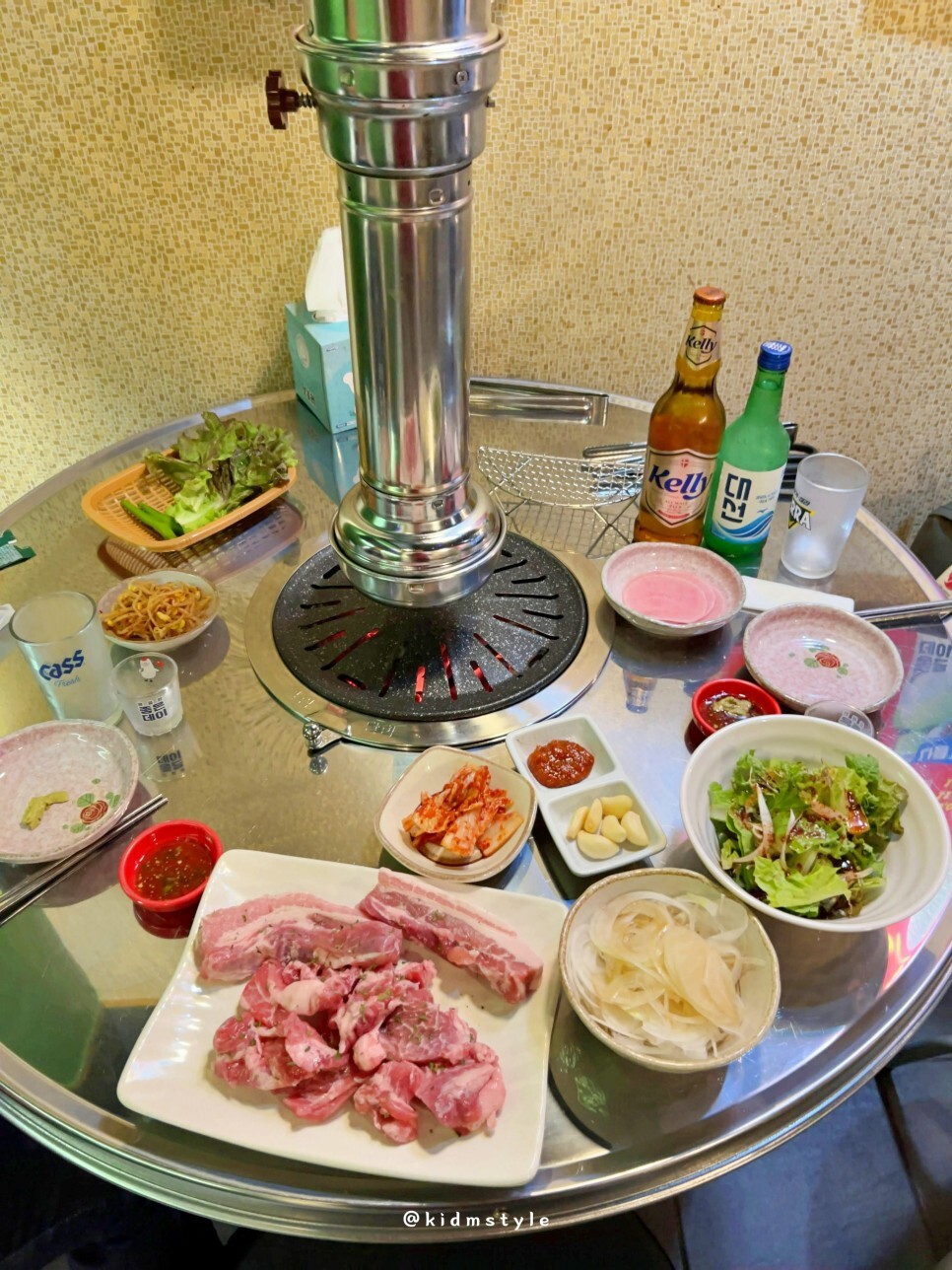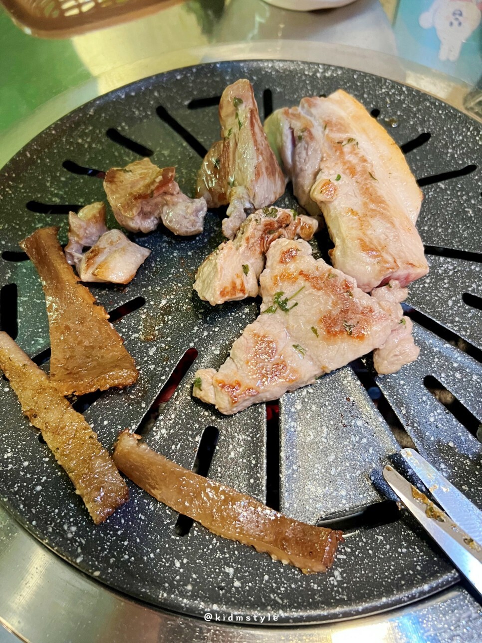 반들반들 코팅이 잘 되어있는 불판 위에 뒷고기와 삼겹살을 올리고 본격적으로 굽기 시작한다. 친절하기도 친절한데 하나하나 깔끔하고 깨끗하게 관리되고 있는 모습이 너무 마음에 든다.