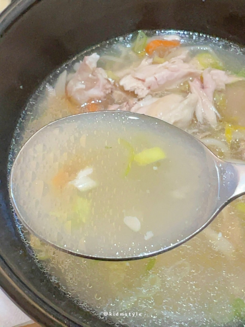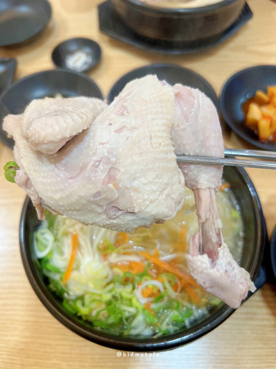 국물은 상당히 깊다. 진한 닭 육수가 제대로 우러난 국물이며 닭과 칼국수 둘 다 잘 어울린다. 닭 역시 부드럽고 잘 익었다.