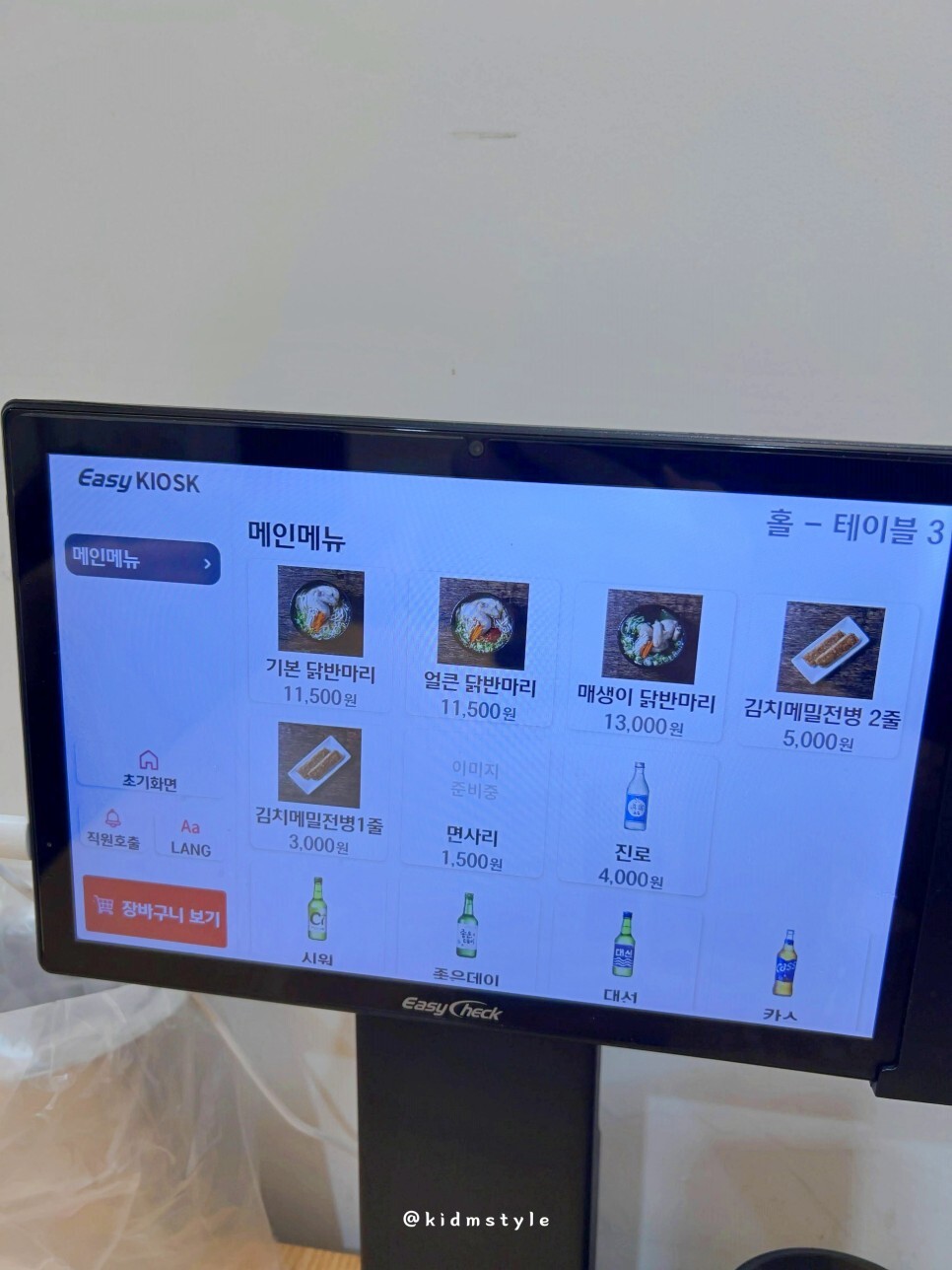 태블릿으로 주문을 하면 되고 기본 닭반마리 칼국수 2그릇과 김치메밀전병 1줄을 주문했다. 참고로 인스타그램 협업으로 방문을 하였던 후기인데 워낙 좋아하는 집이라 블로그에도 포스팅을 하게 되었다.