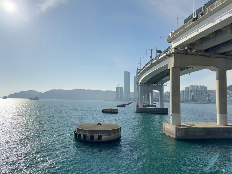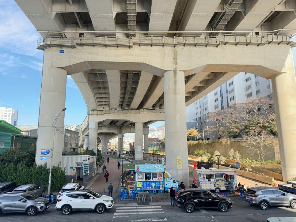 남항대교 아래에 조성되어 있는 시설들이 보이기 시작합니다.