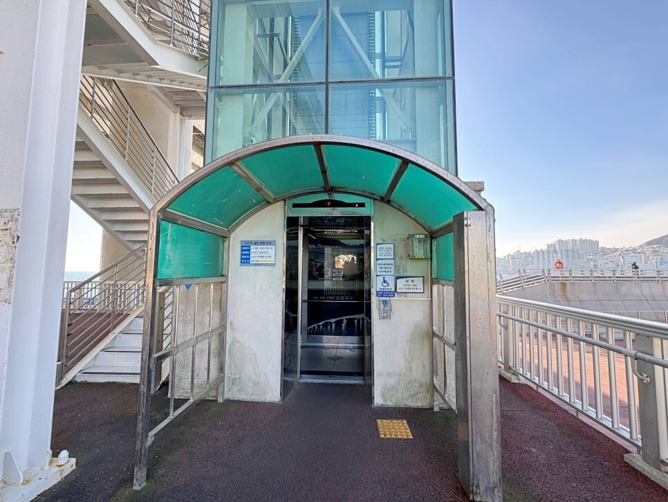 남항대교에서 바라보는 풍경은 어떨까요? 엘리베이터를 타고 올라가 보기로 합니다.
