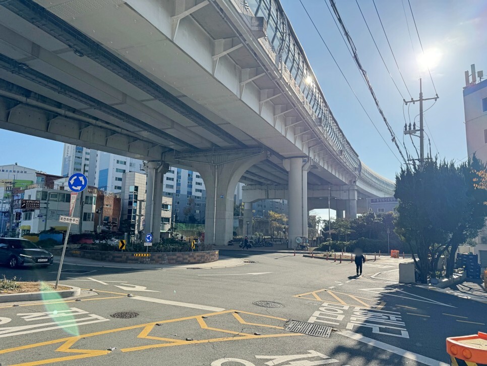 조금 더 걷다 보면 남항대교 진입로가 보이는데요. 오른쪽 아래 길로 쭉 내려가면 오늘 목적지를 만날 수 있습니다.