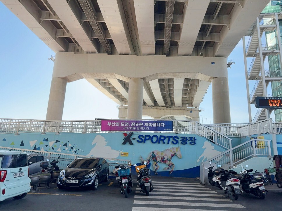 방재 호안 안쪽으로 길게 조성된 X-sports 광장의 모습입니다. 정말 넓지 않나요? 다양한 운동을 즐길 수 있는 공간이 있어서 인기가 아주 많은 곳이기도 합니다.