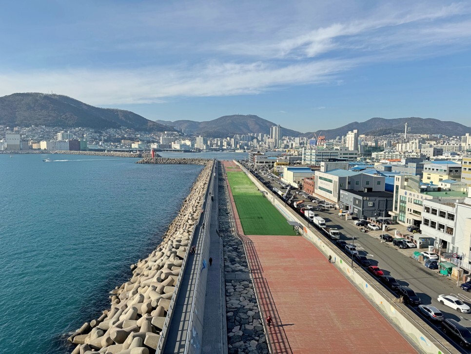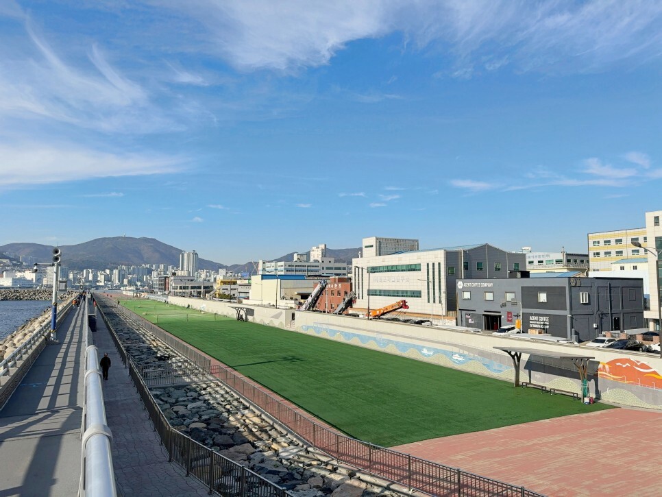 오늘 소개해 드린 이곳 남항 호안 X-sports 광장은 태풍과 해일 등 자연재해를 막기 위한 방재 호안의 역할과 시민들을 위한 운동 및 편의시설을 제공하는 곳이에요.