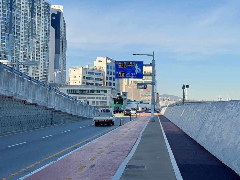 남항대교를 거의 다 건너갈 때쯤 나타나는 포토존에서 바라본 풍경은 부산의 원도심을 한눈에 담을 수 있습니다.