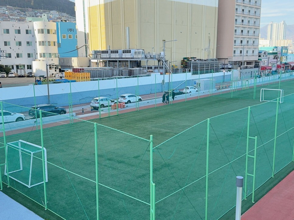 풋살장도 잘 조성되어 있습니다. 신나게 한 게임 즐길 수 있는 공간입니다.