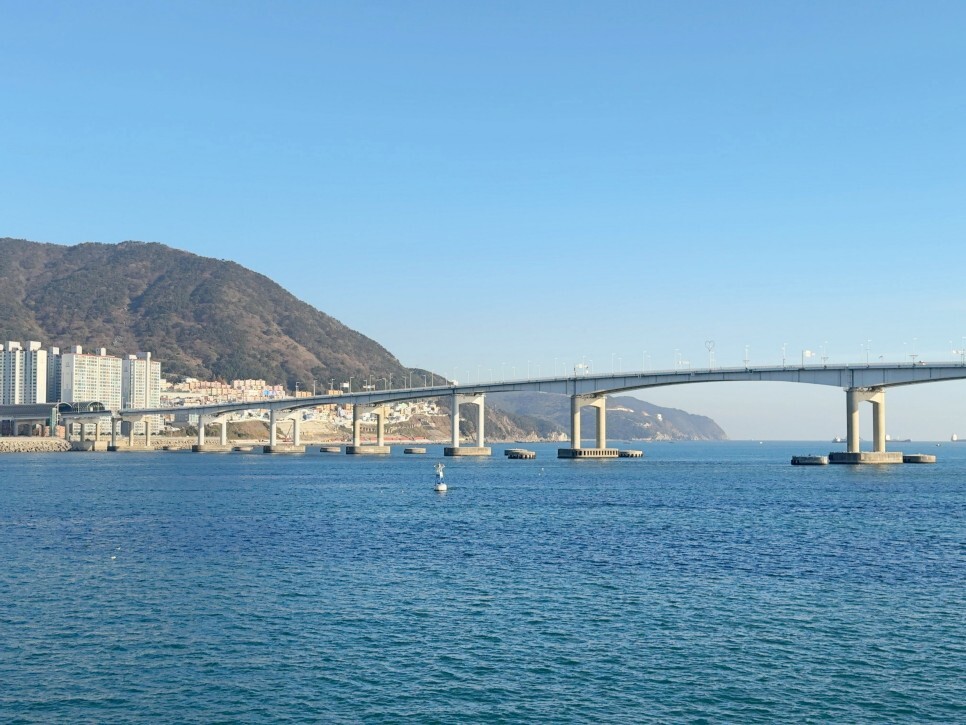 차도 옆에 인도가 안전하게 잘 조성되어 있어요. 약 1km 남짓 되는 다리 위 구간을 걸으며 힐링을 시작해 봅니다.