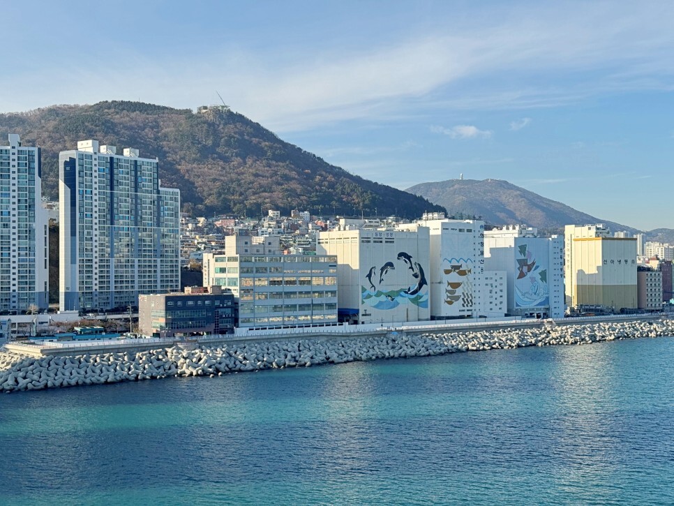 남항대교를 거의 다 걷다 보면 공동어시장 쪽 냉동창고 앞으로 기다란 방재 호안이 보이는데요. 오늘 소개할 남항체육공원이 있는 곳이기도 합니다.