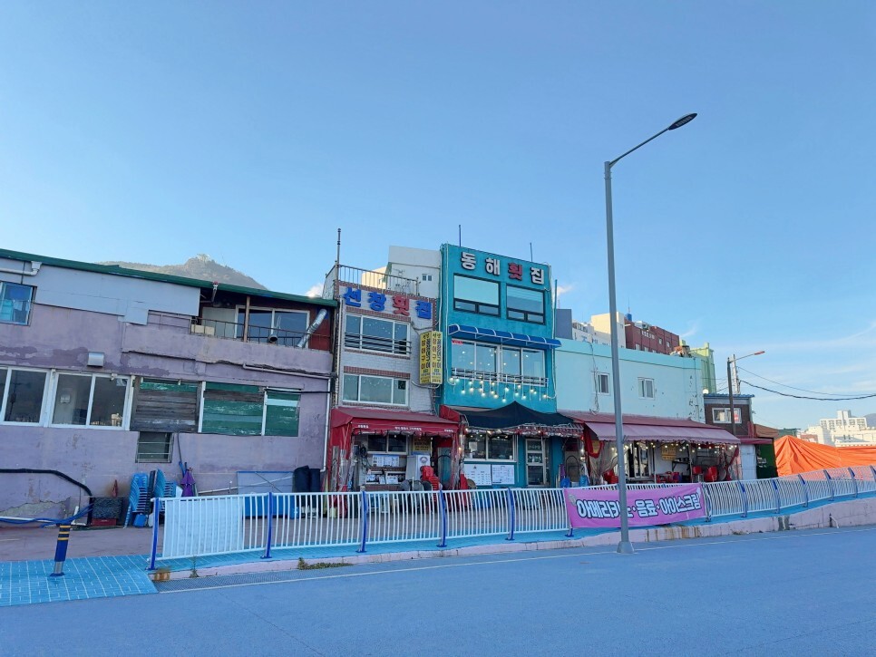 남항체육공원 끝에는 횟집 등 식당도 있으니 참고하시기 바랍니다. 오른쪽 길로 돌아가면 식당이 더 있어요.
