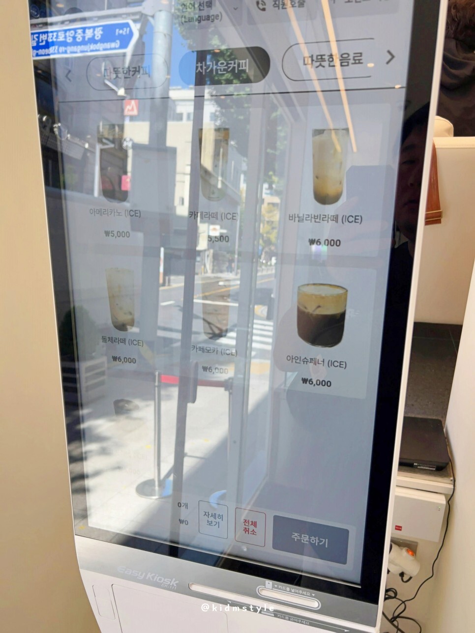 입구에 들어서면 왼쪽에 키오스크가 있는데 이걸로 주문하면 된다.