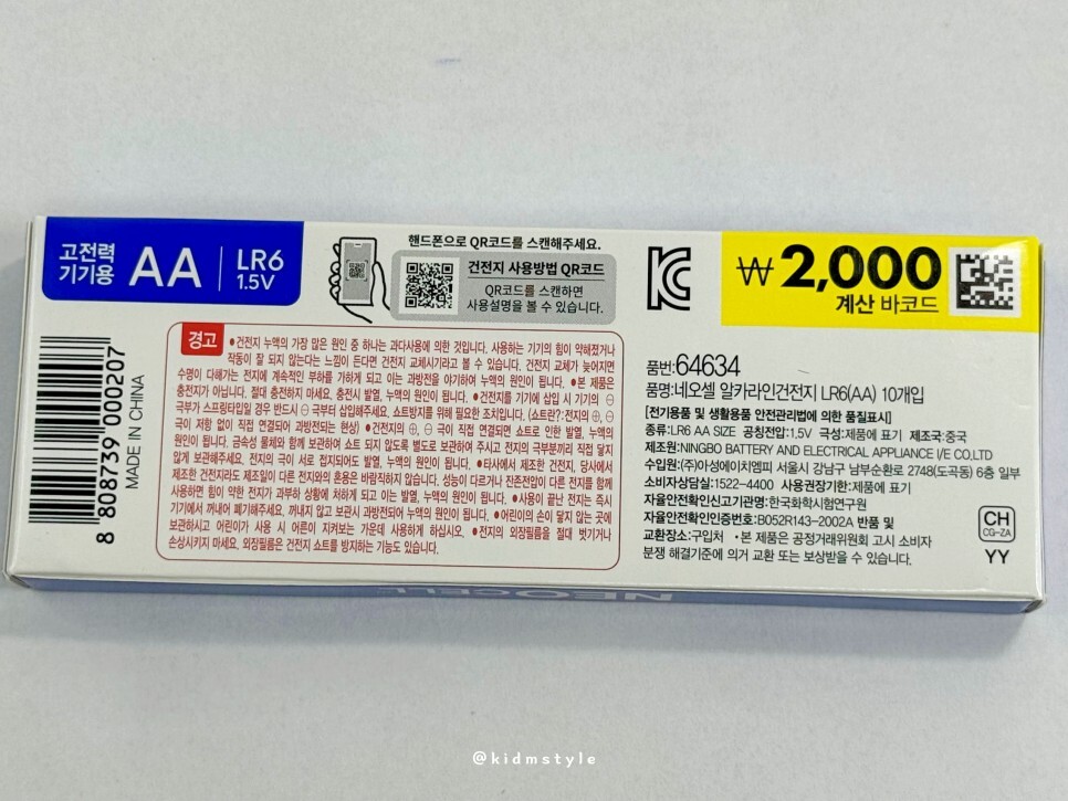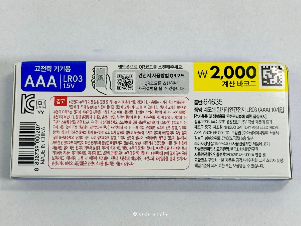 AA, AAA 둘 다 필요해서 10개짜리 한 팩씩 구입했다. 가격은 2,000원이다. 더 큰 묶음도 파는데 이날 찾아간 다이소에는 10개짜리 밖에 없더라.