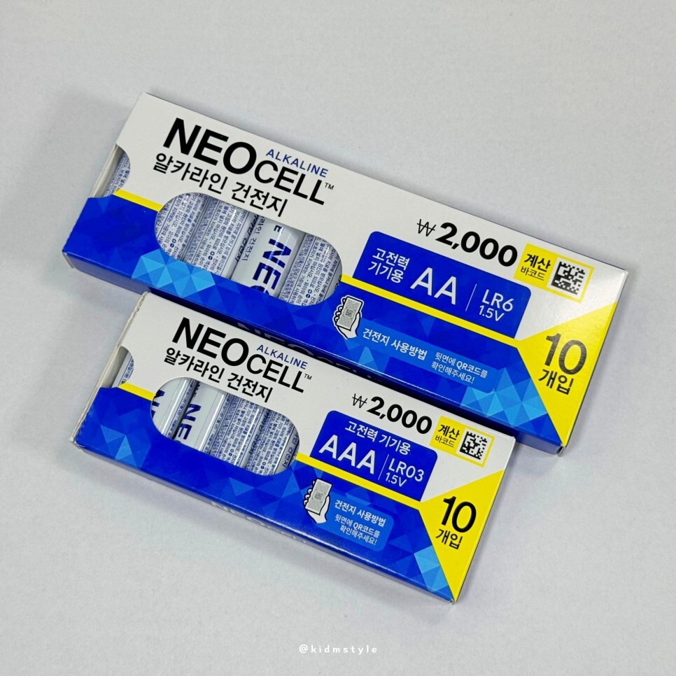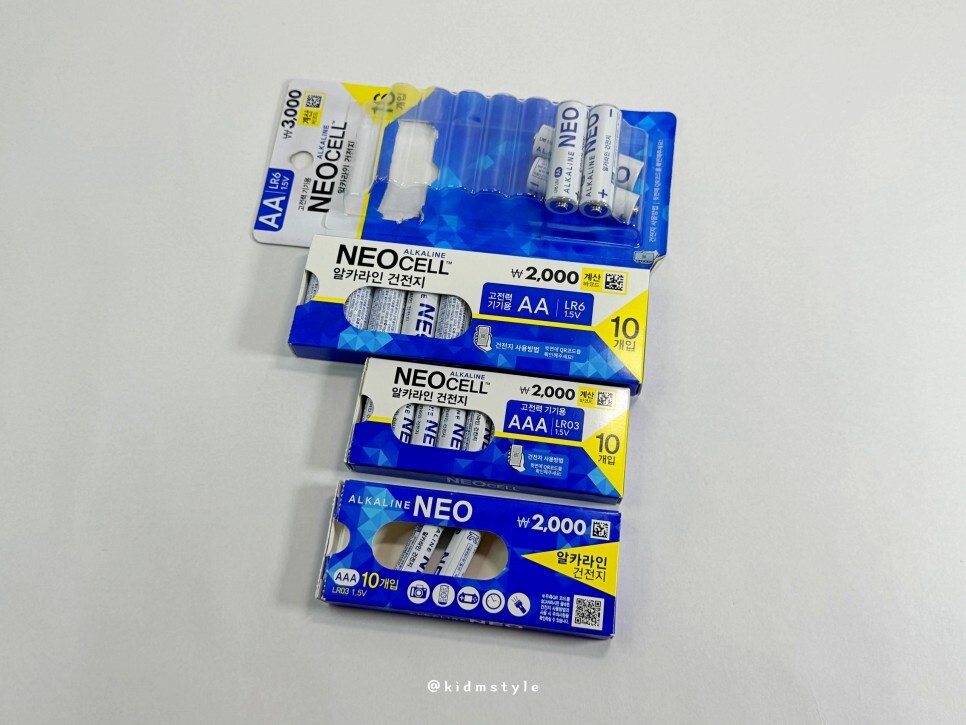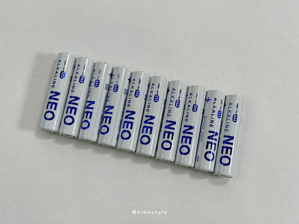 주로 사용하는 사이즈는 1.5v AA와 AAA이다. 예전에는 에너자이저, 듀라셀 제품만 사용하였는데 요즘은 가성비 제품도 함께 사용 중이다. 오늘 소개할 다이소 네오셀 알카라인 건전지이다.