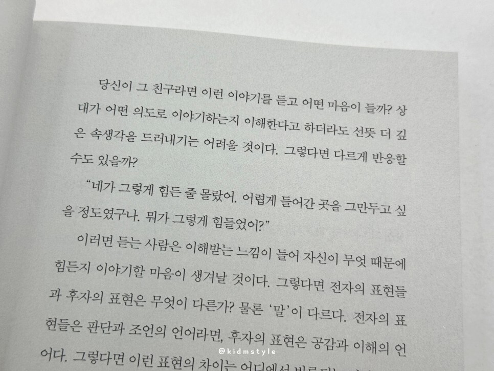 그리고 책을 읽으면서 많이 배웠다. 지금 당장 100% 실천하기는 어렵겠지만 차근차근 나 역시 연습하고 노력해 보려고 한다.