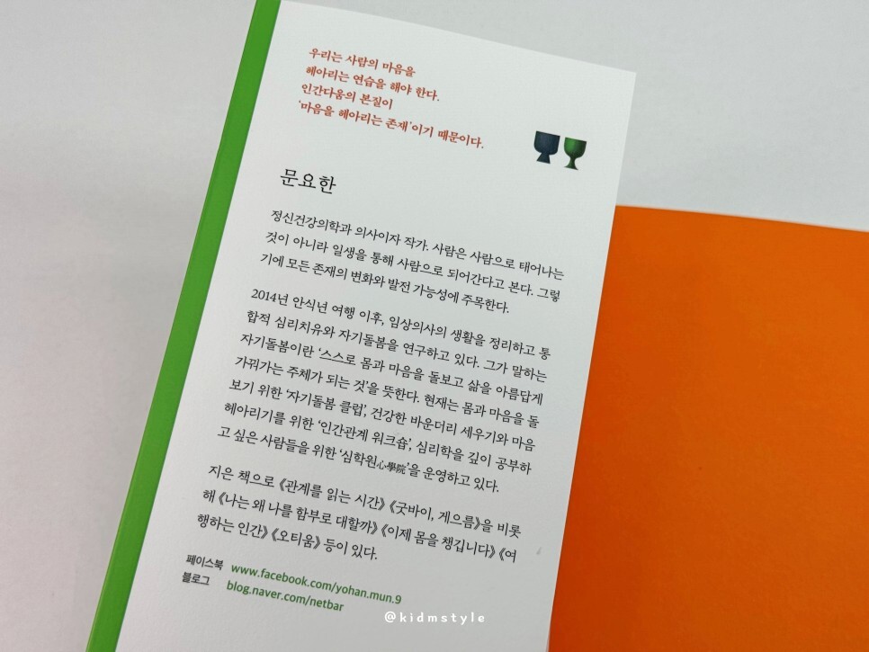 이 책은 정신건강의학과 의사이자 작가인 문요한이라는 분이 집필하였다.