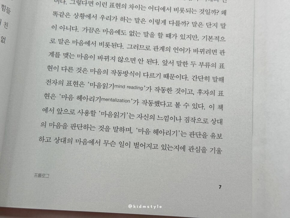 우리는 인간이니까 마음읽기를 안 할 수는 없다. 하지만 마음읽기보다는 마음 헤아리기가 되어야 한다.