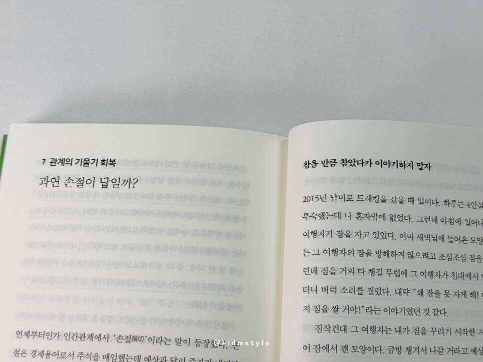 관계의 방법이 서툴거나 어렵다면 이 책을 읽어보는 것을 추천한다. 도움이 될 것이다.