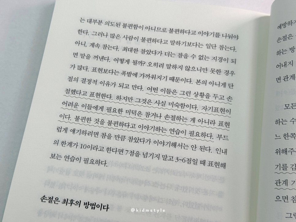 오늘 소개한 책은 집중해서 읽었다. 작년, 올해 인간관계 때문에 힘든 적이 많았기 때문에 더 열심히 읽었던 것 같다.